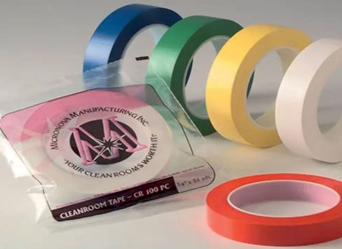 Extremely conformable, vinyl cleanroom tape with synthetic rubber, clean -peel adhesive; ideal for colour coding, sealing and marking on curved and irregular surfaces in cleanroom maintenance and support areas.